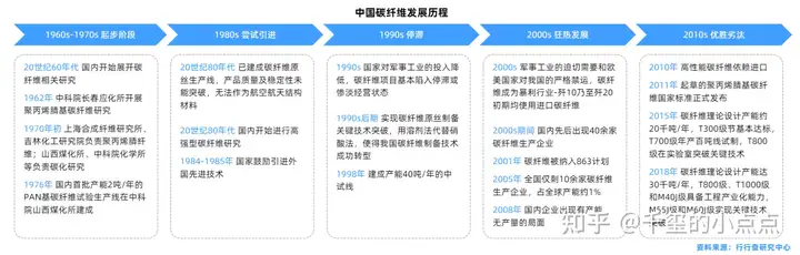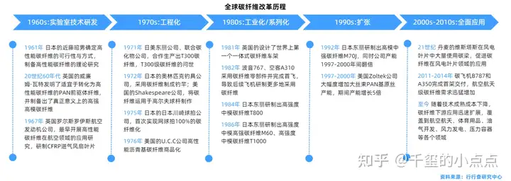 全球碳纤维行业的发展可以分为四个阶段: