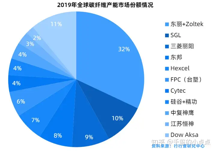 从产能角度而言,2019年日本东丽和其收购的Zoltek占比32%,是业内龙头企业,其他主要厂商包括德国SGL、日本三菱丽阳、日本东邦、台塑、美国Hexcel、美国Cytec等,而在军工、航空等高端领域,日本、美国企业的占比则更大。我国碳纤维研究与日本同时起步,但产业化进程较缓,国外企业仍对国内实施封锁,国内企业未来发展潜力较大。